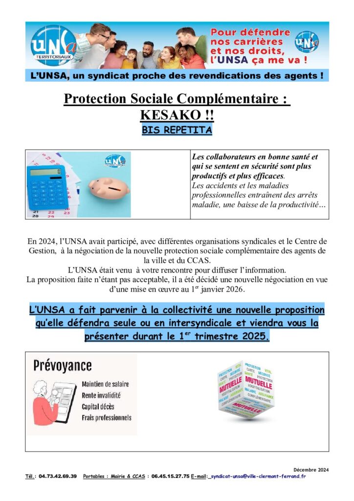 PSC: KESAKO ?Par UNSA_CLERMONT / 10 décembre 2024 Protection Sociale Complémentaire, BIS REPETITA !! Publications similaires : CONSEIL COMMUN DE LA FONCTION PUBLIQUE ACCIDENT DE SERVICE ET IFSE BILAN MI MANDAT AGENDA SOCIAL ET SI ON PARLAIT ARGENT ?!